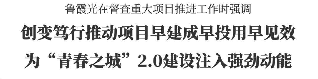 魯霞光在督查重大項目推進工作時強調:創變篤行推動項目早建成早投用早見效 為“青春之城”2.0建設注入強勁動能