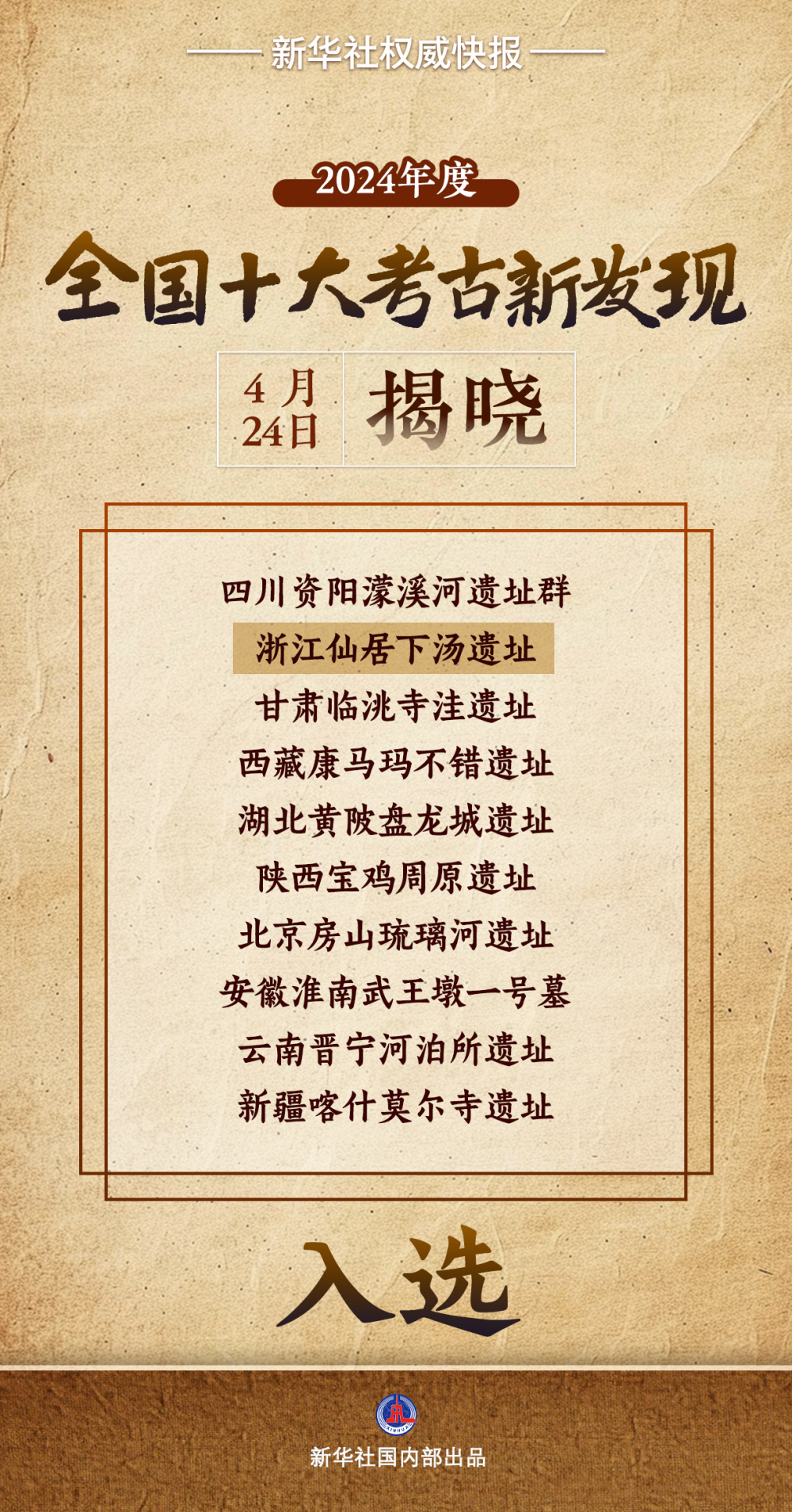 4月23日至24日,2024年度全國十大考古新發現終評會在北京舉行。經項目匯報會、綜合評議,最終評委投票選出2024年度全國十大考古新發現。其中,浙江仙居下湯遺址入選。